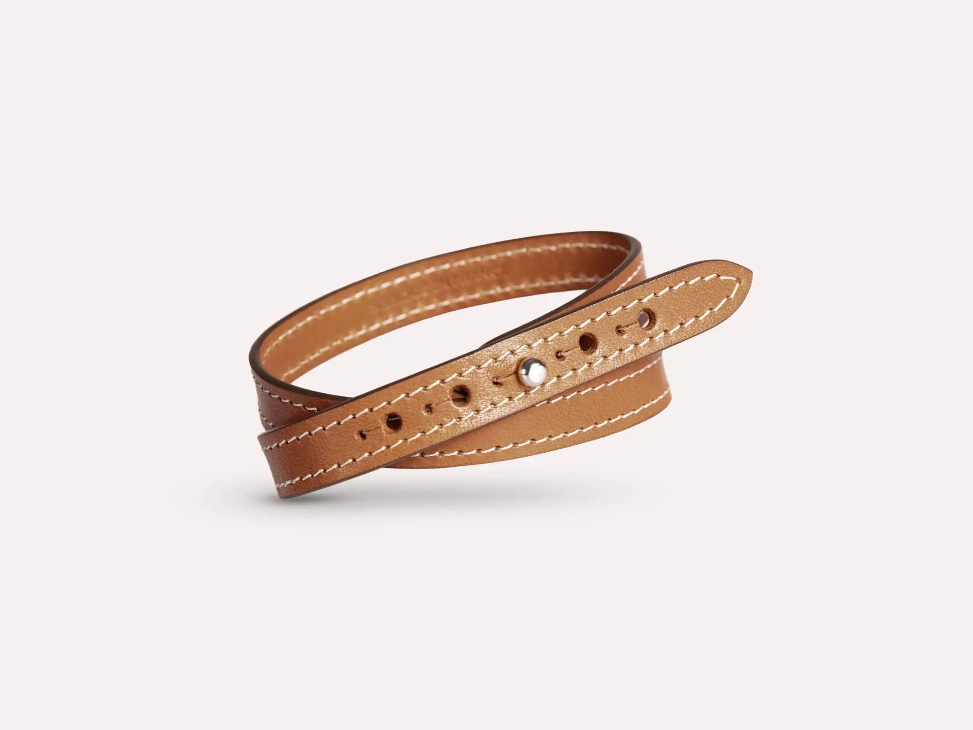 Bracelet deux tours en cuir à tannage végétal