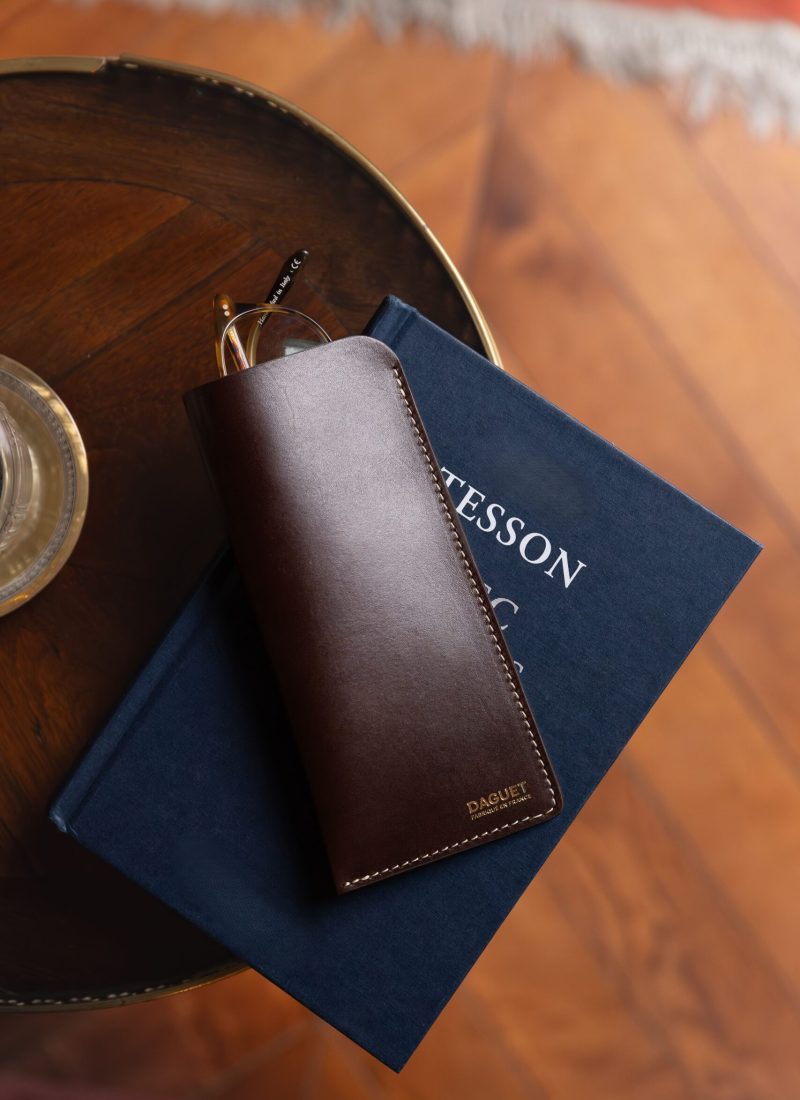 Etui à lunettes en cuir pleine fleur à tannage végétal